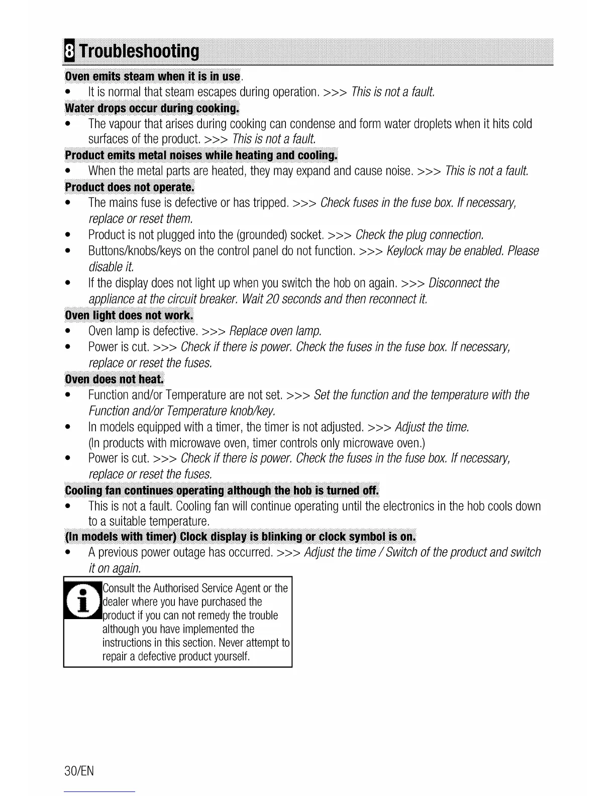 Flavel MLN10CRS - Troubleshooting Common Issues; Normal Operating Phenomena; Appliance Not Operating or Heating; Oven Light and Cooling Fan Issues