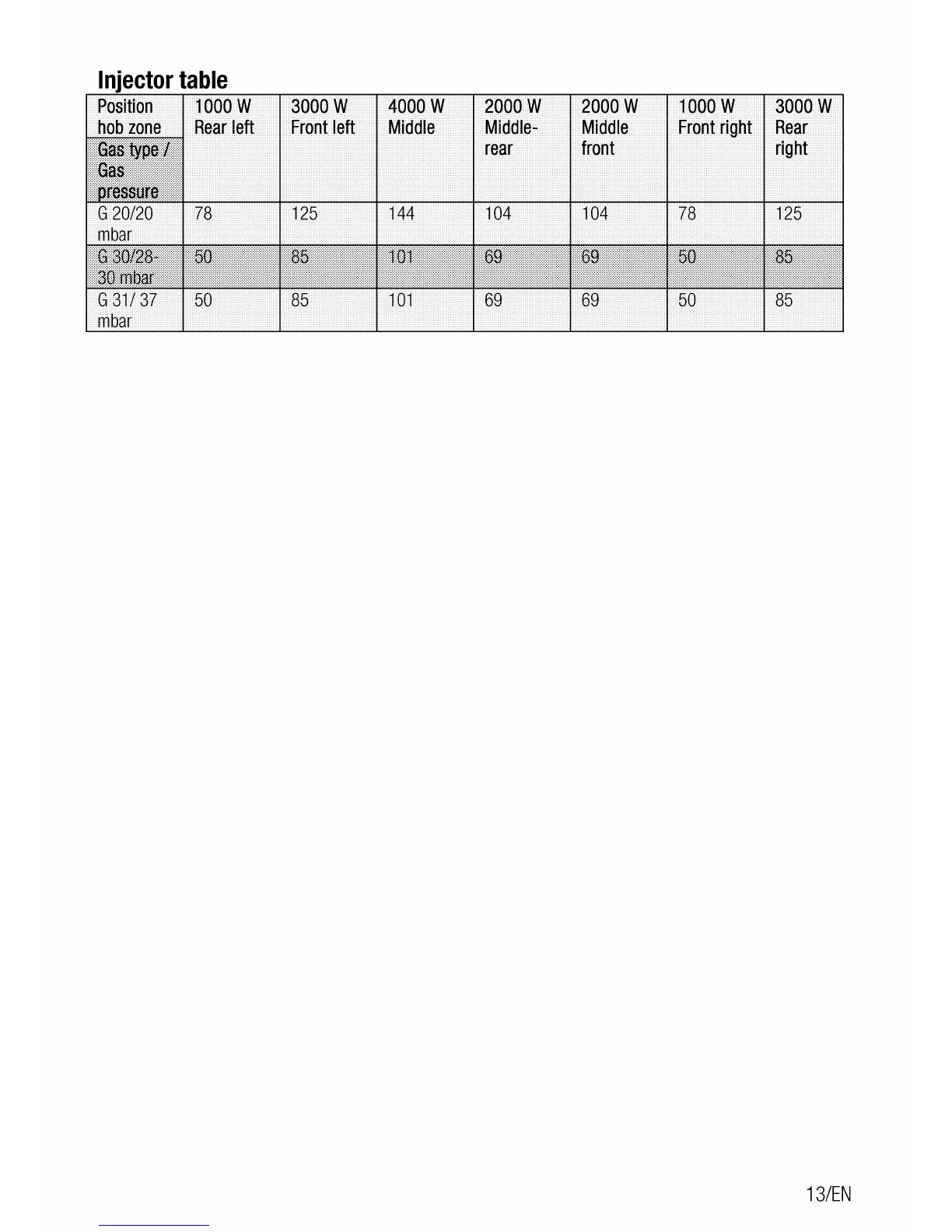 Flavel MLN10FRS - Injector Table