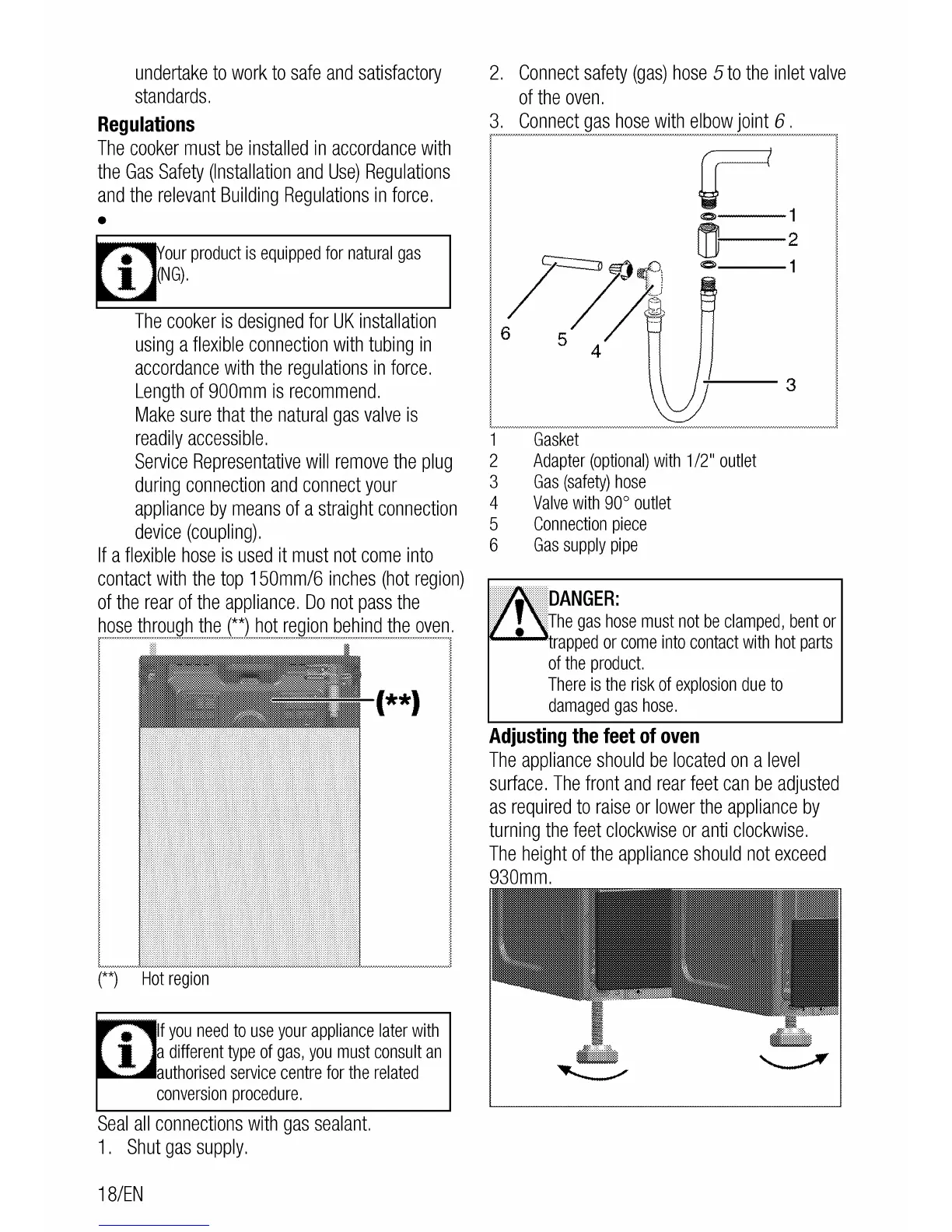 Flavel MLN10FRS - Regulations; Adjusting the Feet of Oven
