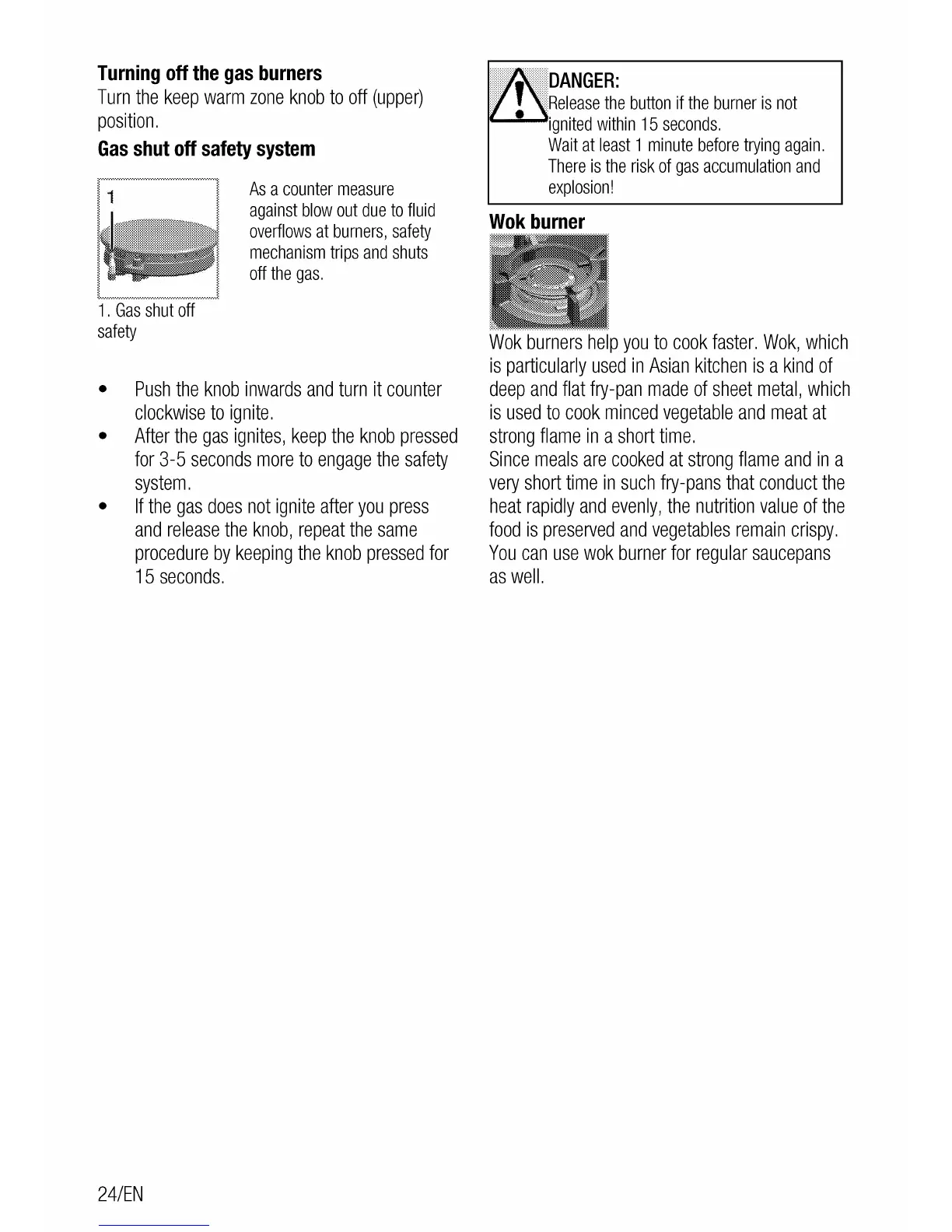 Flavel MLN10FRS - Turning off the gas burners; Gas shut off safety system