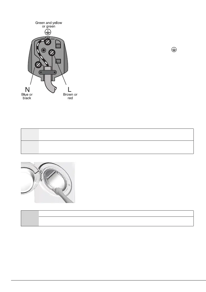 terminal in the plug marked ‘E’ or with the symbol or