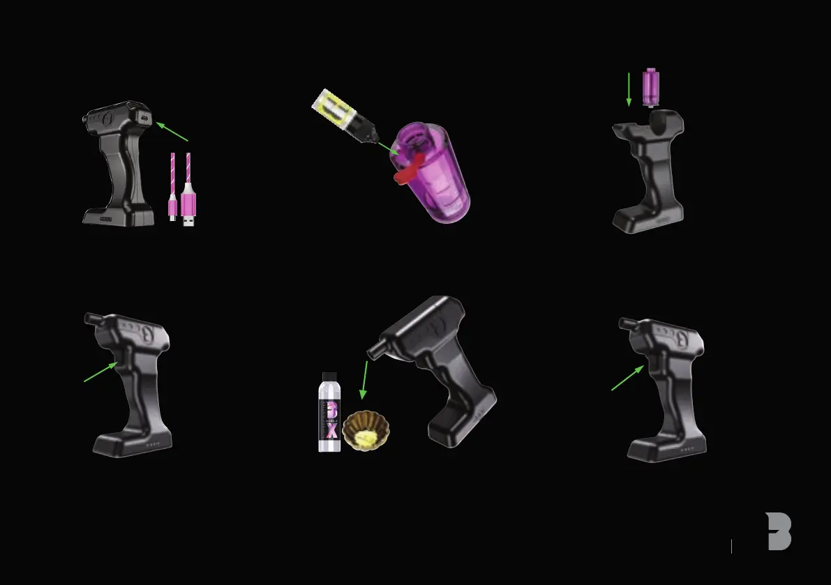 Flavour Blaster MINI - Quick Start Guide; Charge Blaster; Prime Coil and Fill Tank; Insert Tank and Add Nozzle