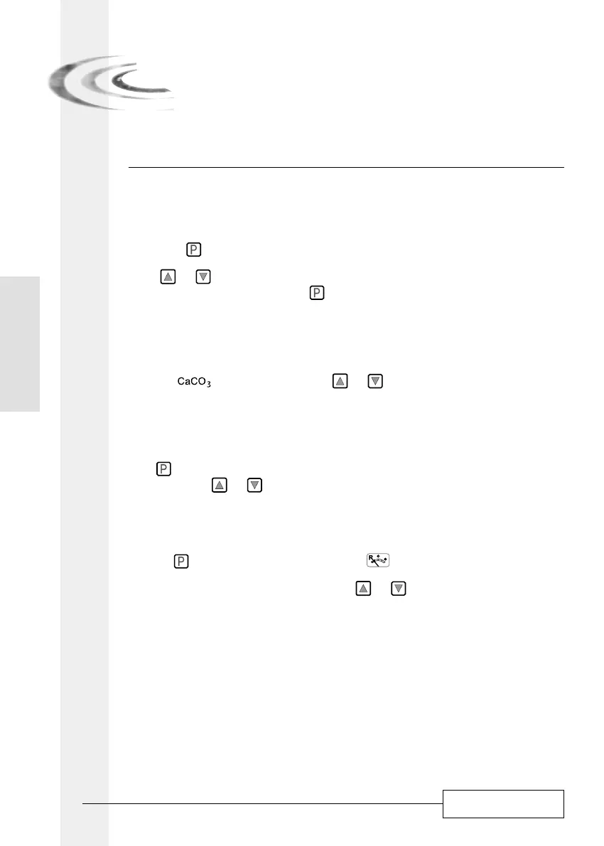 Press button. The letter "P" identifies this parameter. The unit of measure is the °tH