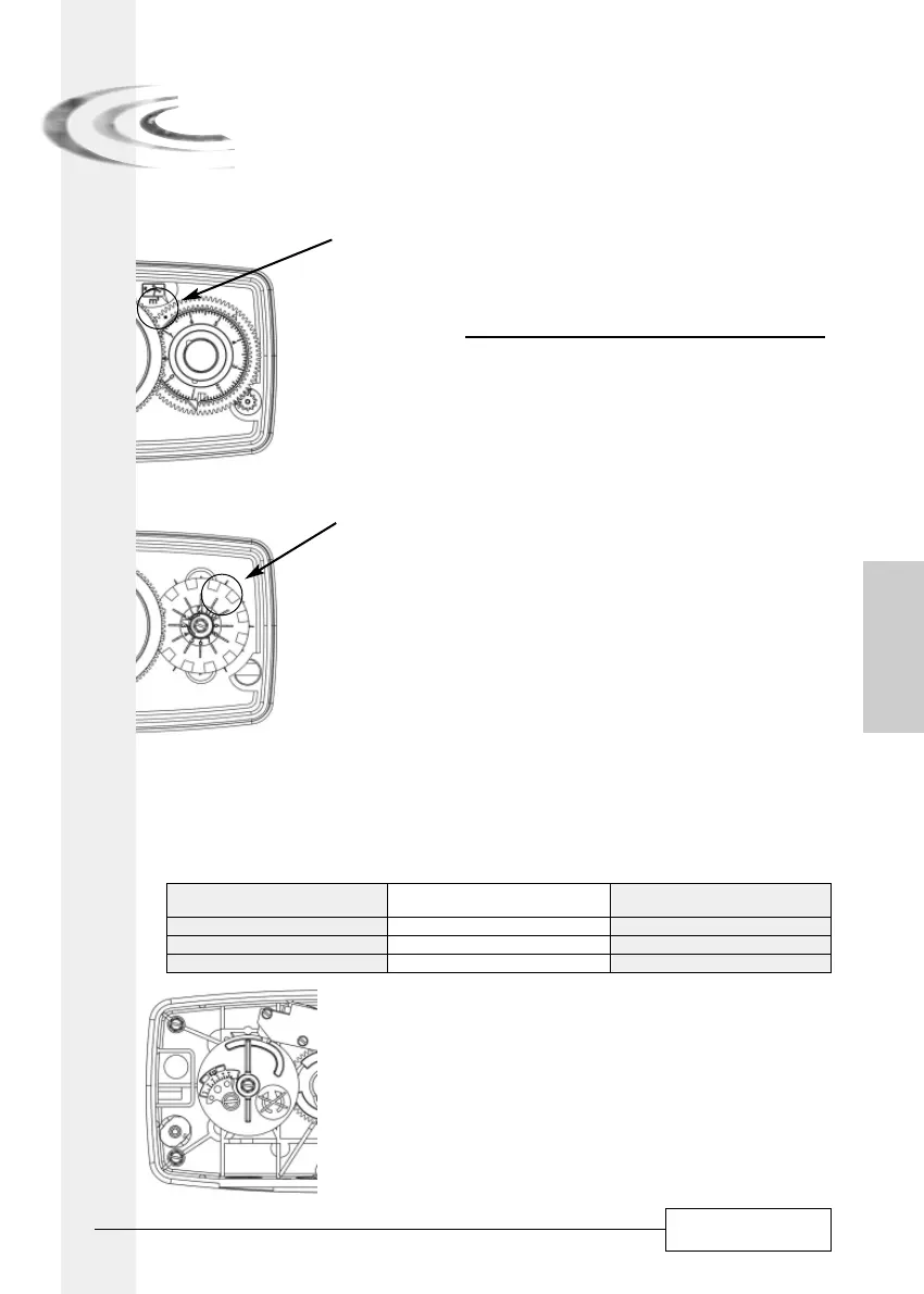Das 24 Stundenrad (kleines rotes Rad) einschalten, das Stundenrad drehen zwecks Anzeige im