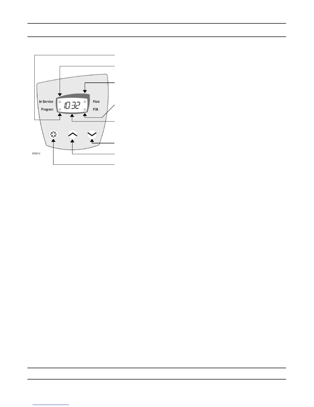 The Time Of Day display alternates with the Volume Remaining display in gallons or liters. The Meter dot