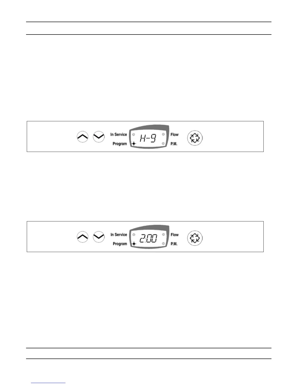 Example: 2 o’clock A.M. regeneration time: [ 2:00 ] (P.M. Indicator Dot Off)