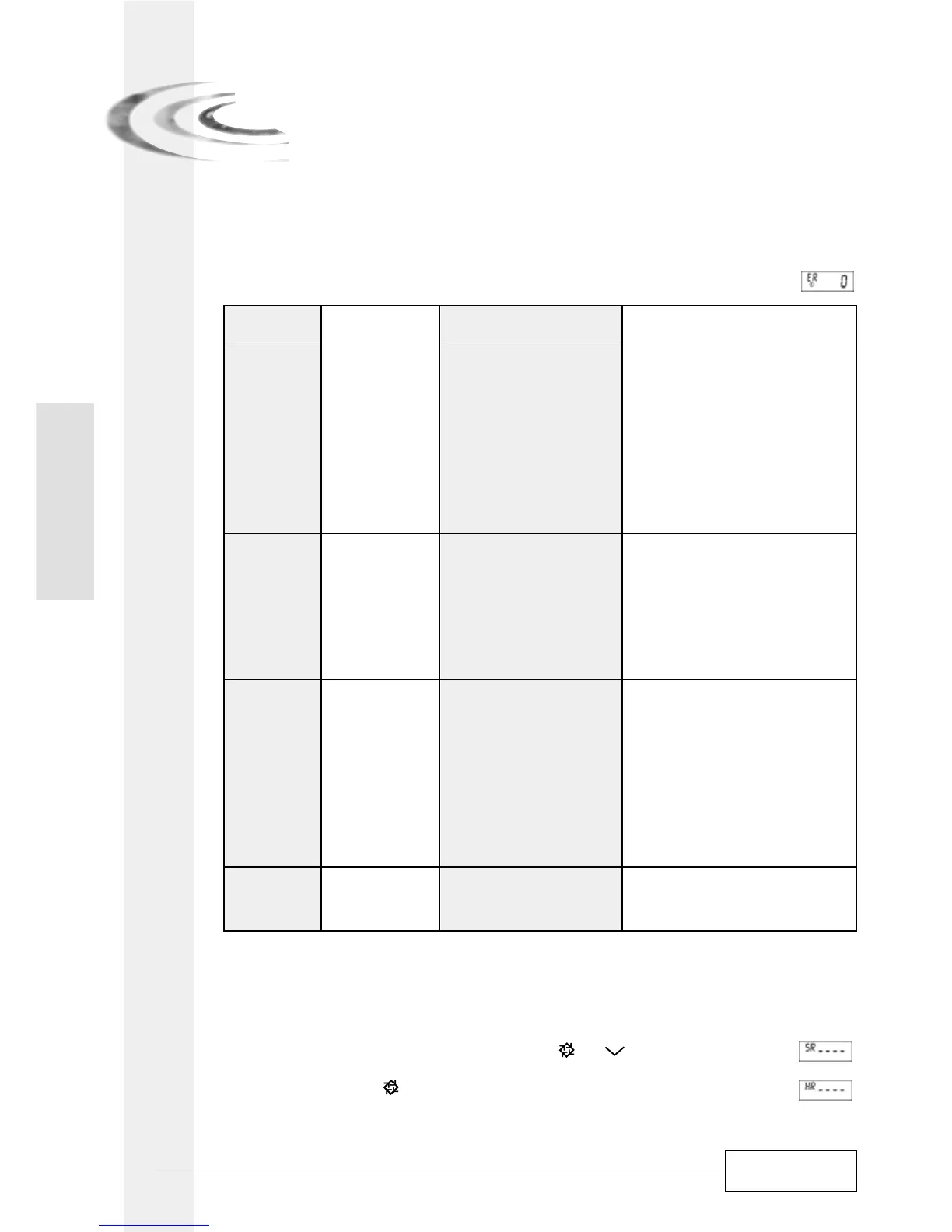 letters ER will be displayed and the error code.