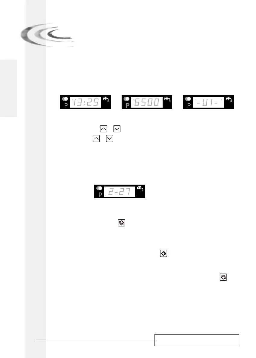La vanne étant en service, l’affichage indique en alternance l’heure du jour, le volume restant