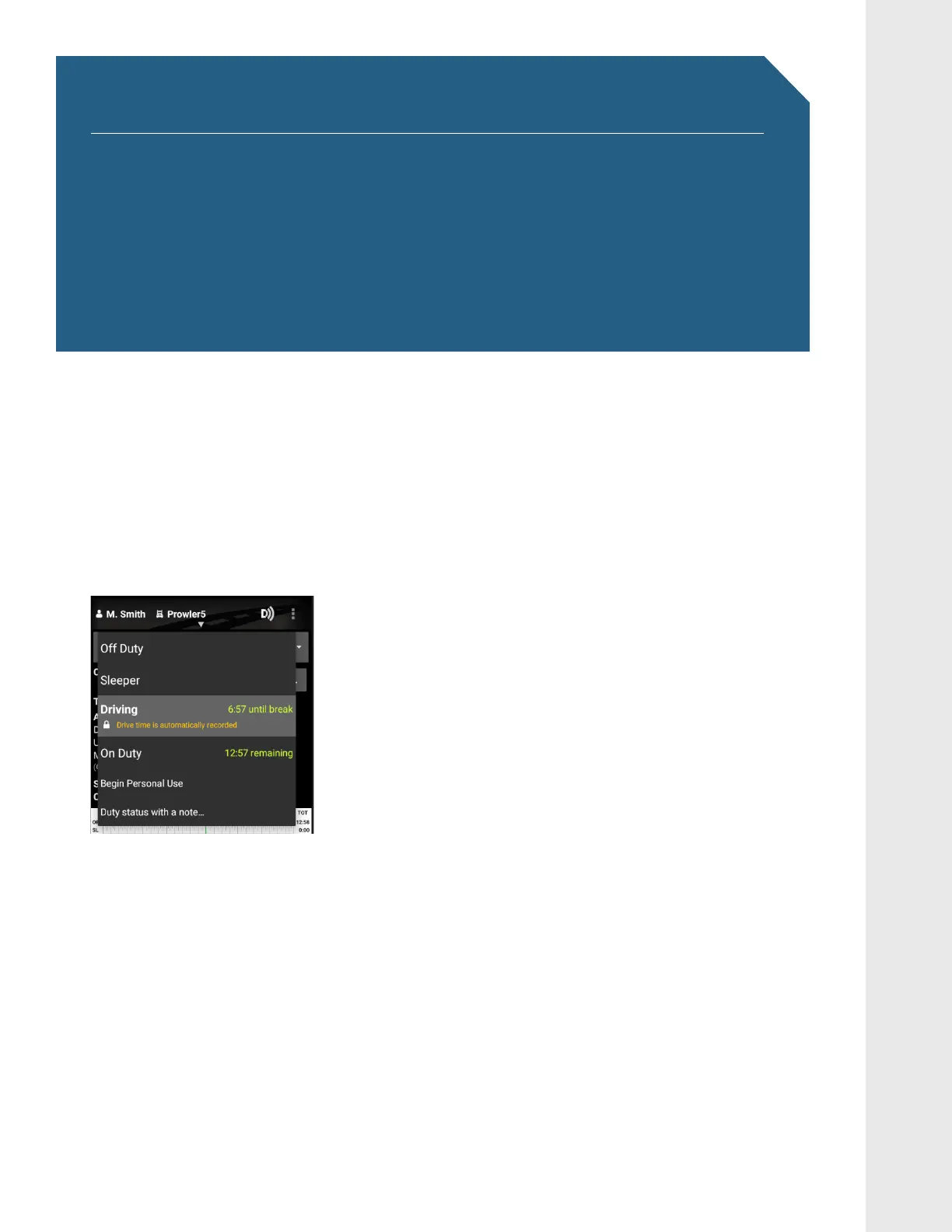 duty status. Driving is automatically recorded, so