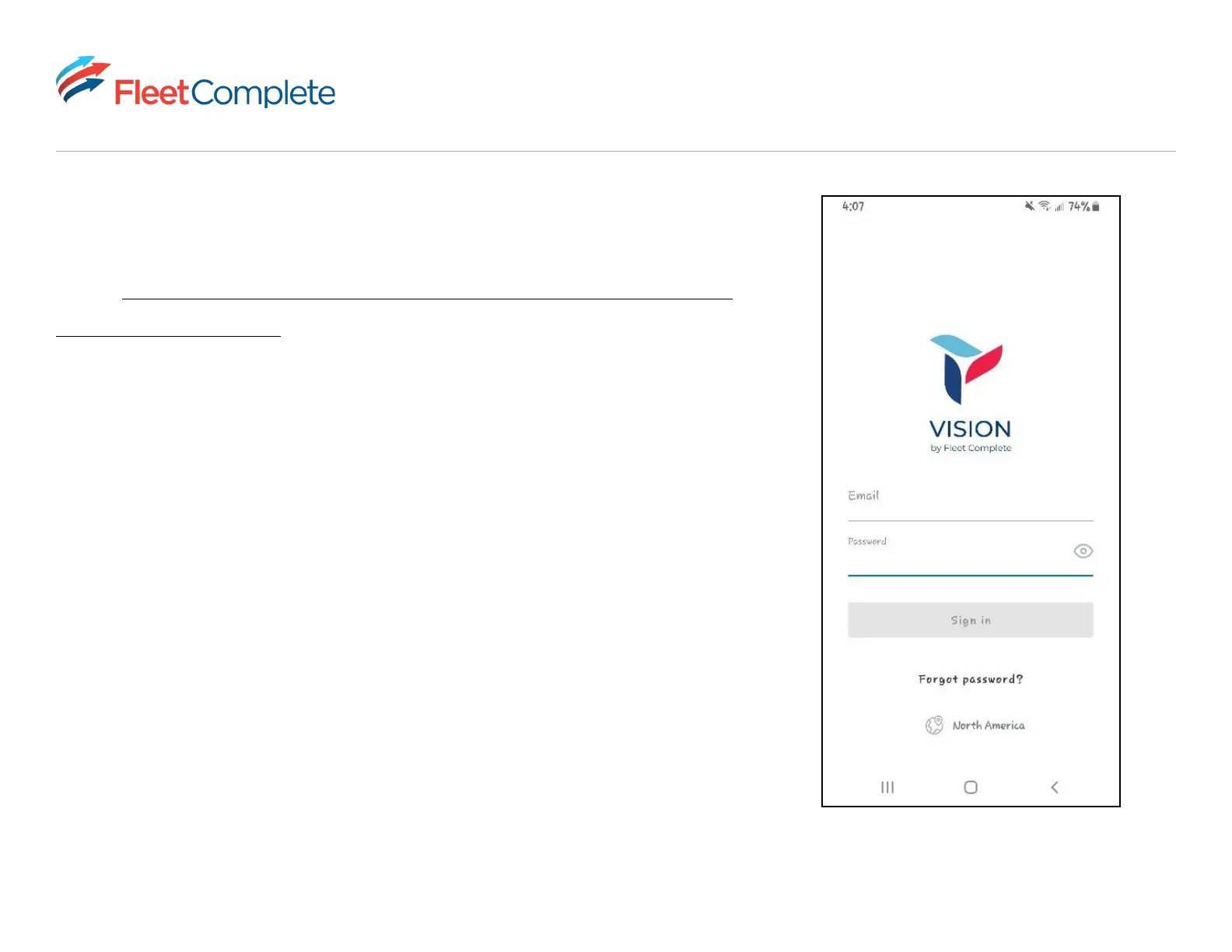Download the Fleet Complete Vision app from Google Play store, link
