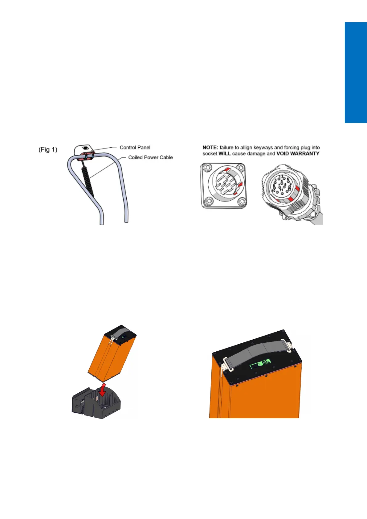 8. Once charged, dock battery within the machine. Battery status can be