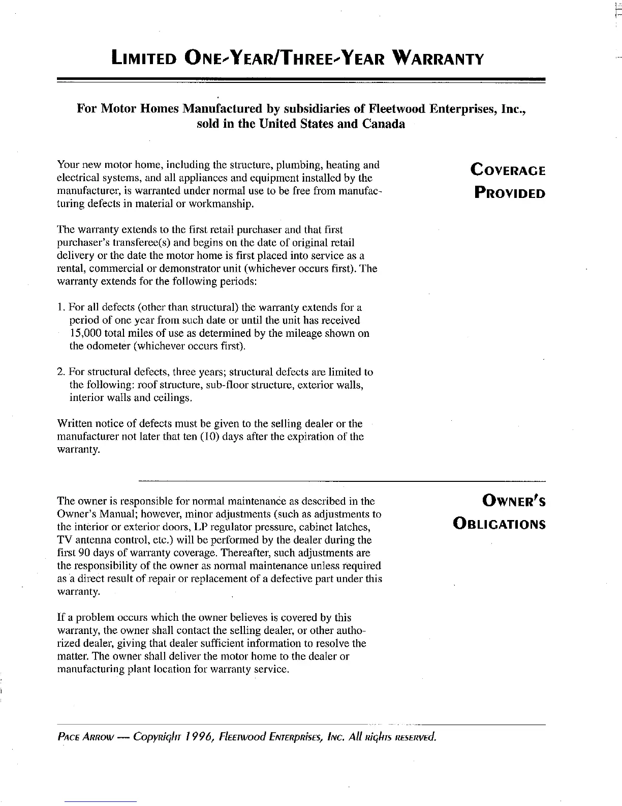 warranty, the owner shall contact the selling dealer, or other autho-