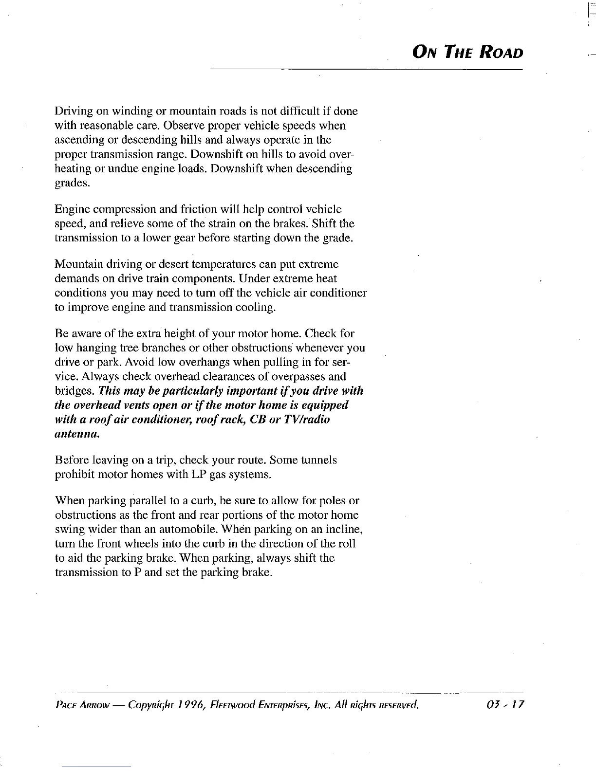 heating or undue engine loads. Downshift when descending