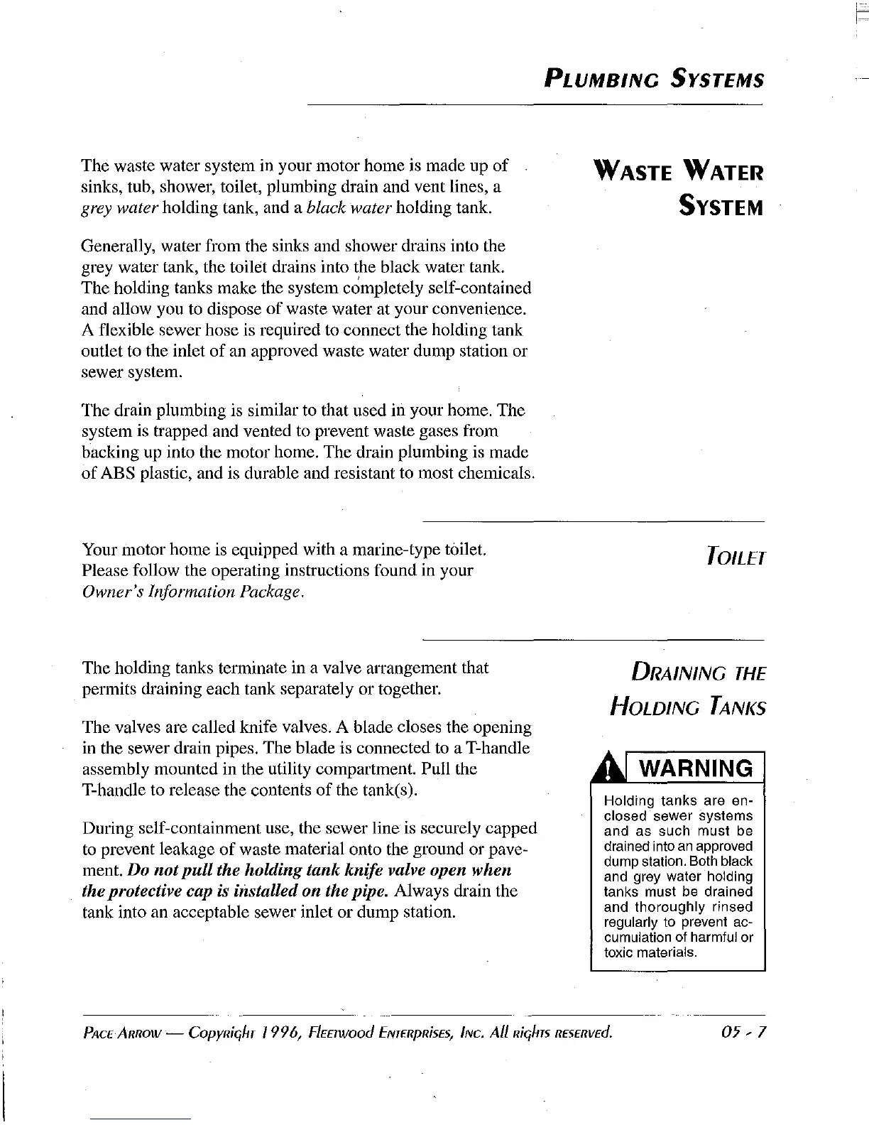 grey water holding tank, and a black water holding tank.