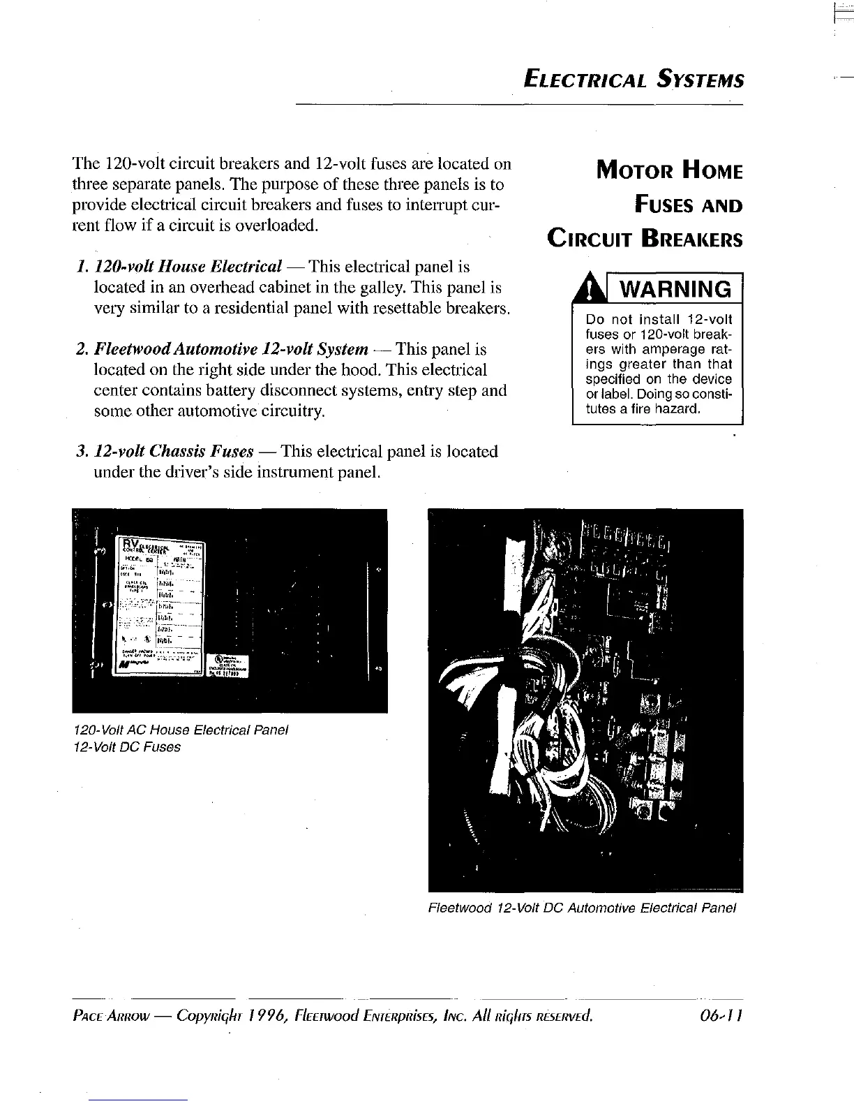 The l20-volt circuit breakers and 12-volt fuses are located on