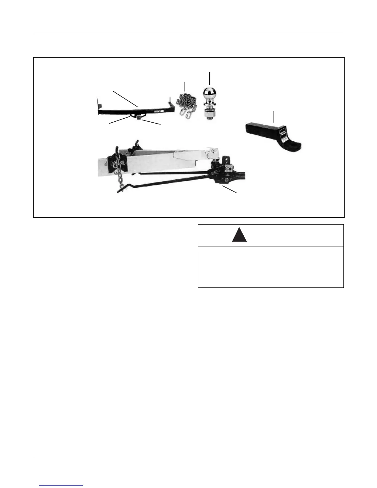 Typical hitch system components are shown in the following illustration.