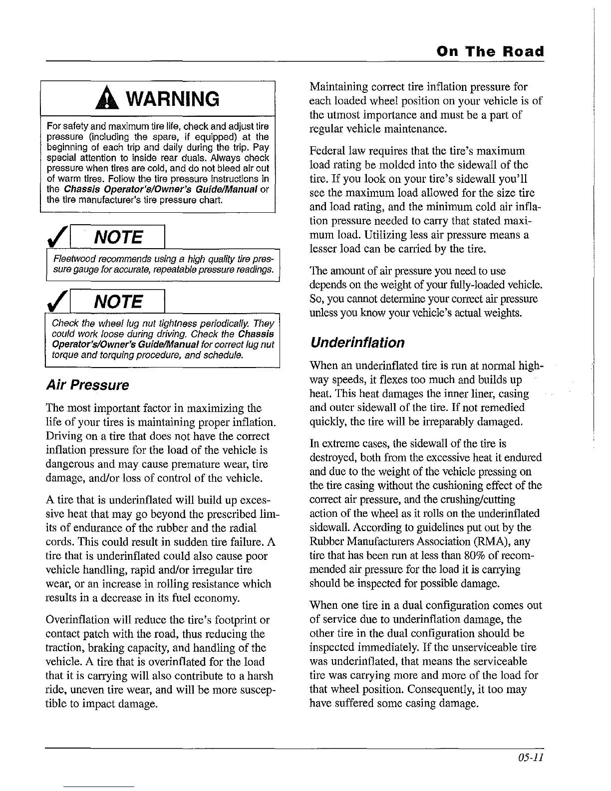 Fleetwood recommends using a high quality tire pres-