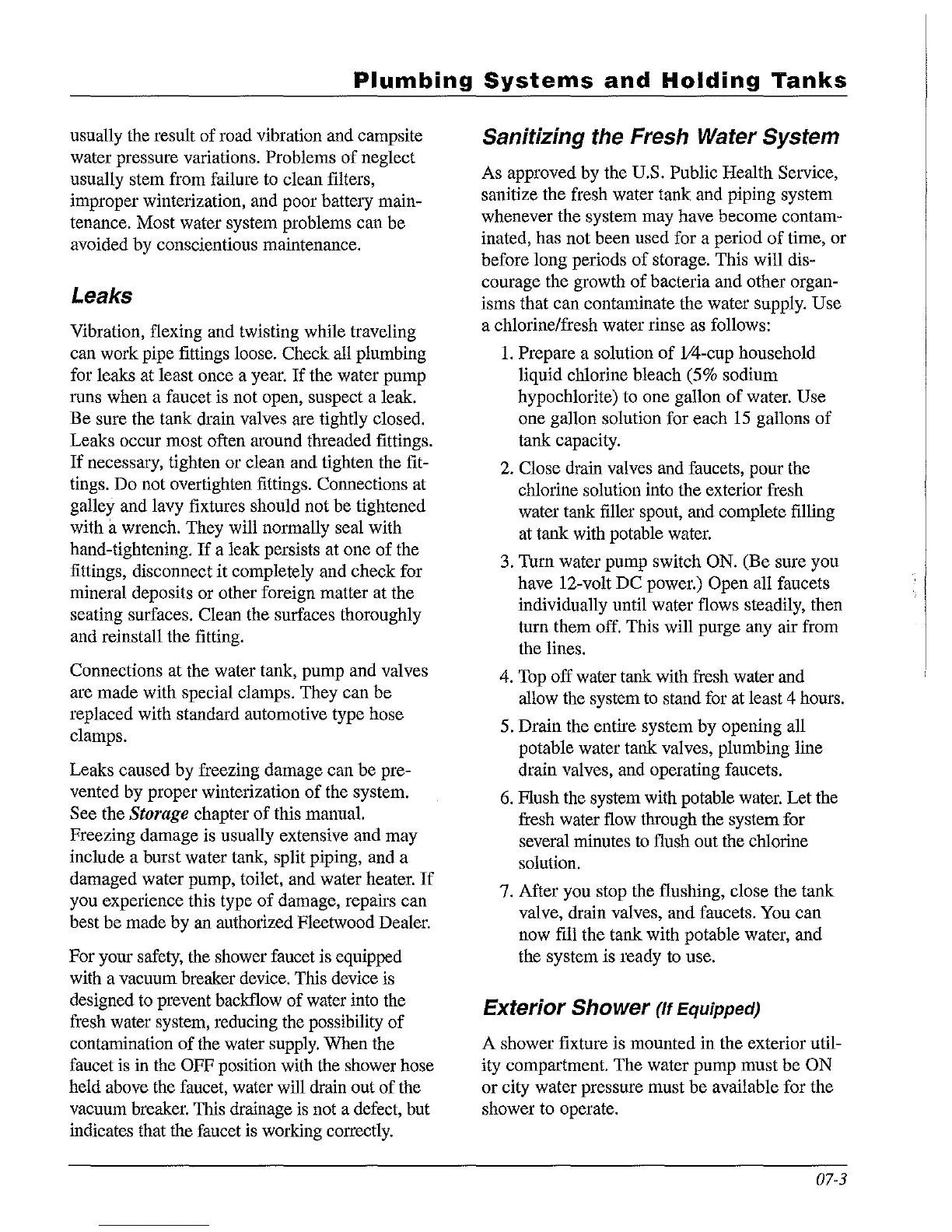 sanitize the fresh water tank and piping system