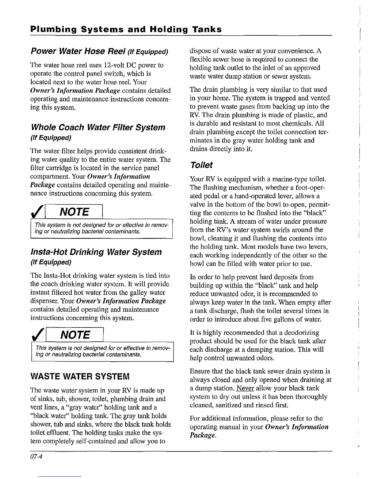 toilet effluent. The holding tanks make the sys-