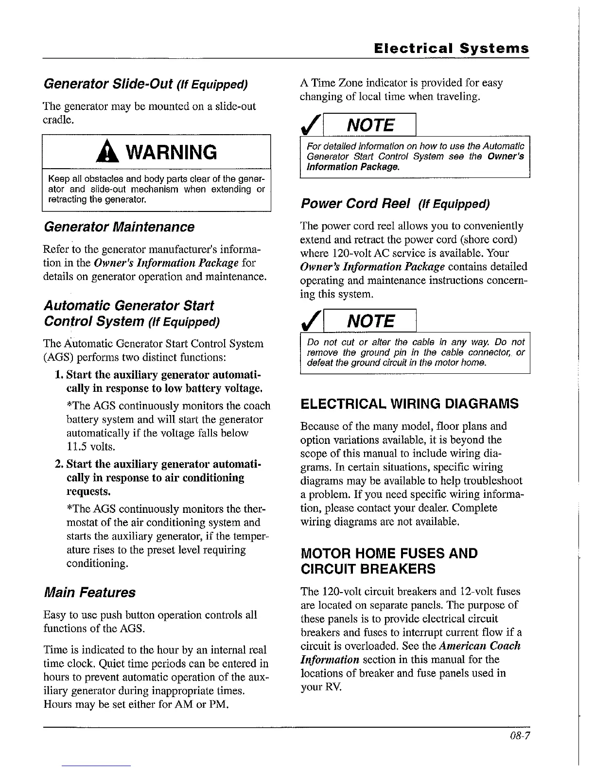 details on generator operation and maintenance.