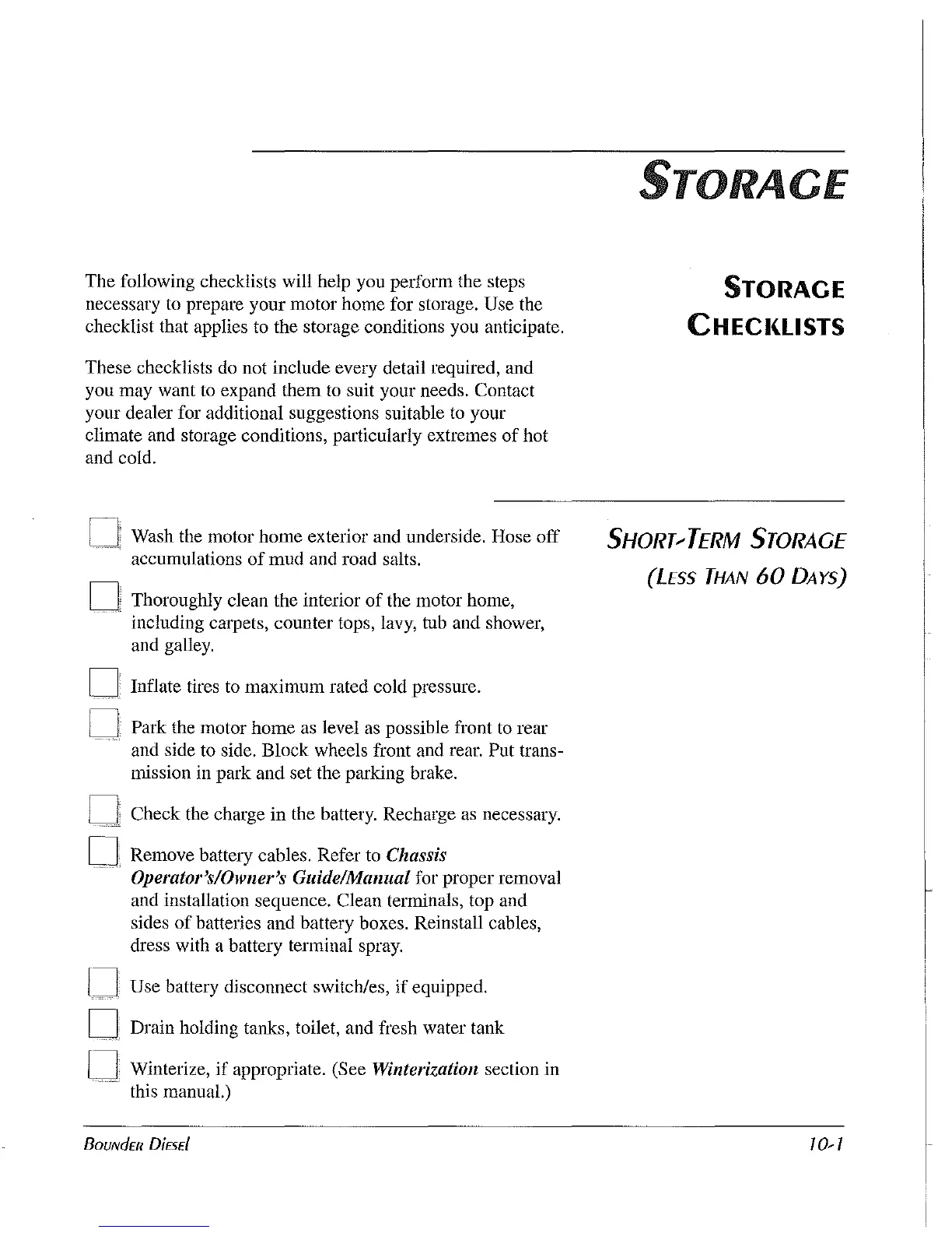 necessary to prepare your motor home for storage.