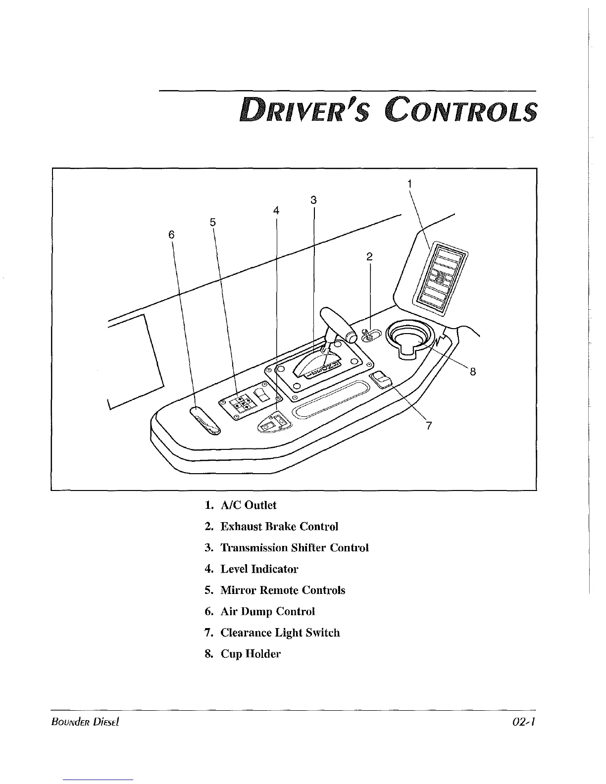 Fleetwood Bounder 2000 - Drivers Controls and Exterior Elevations; Drivers Control Panel Overview