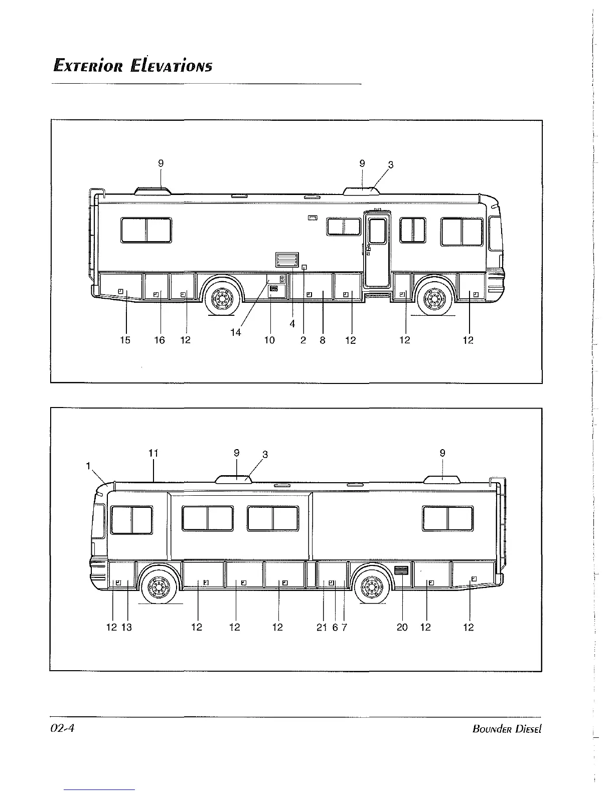 Fleetwood Bounder 2000 - Exterior Elevations Diagram and Features