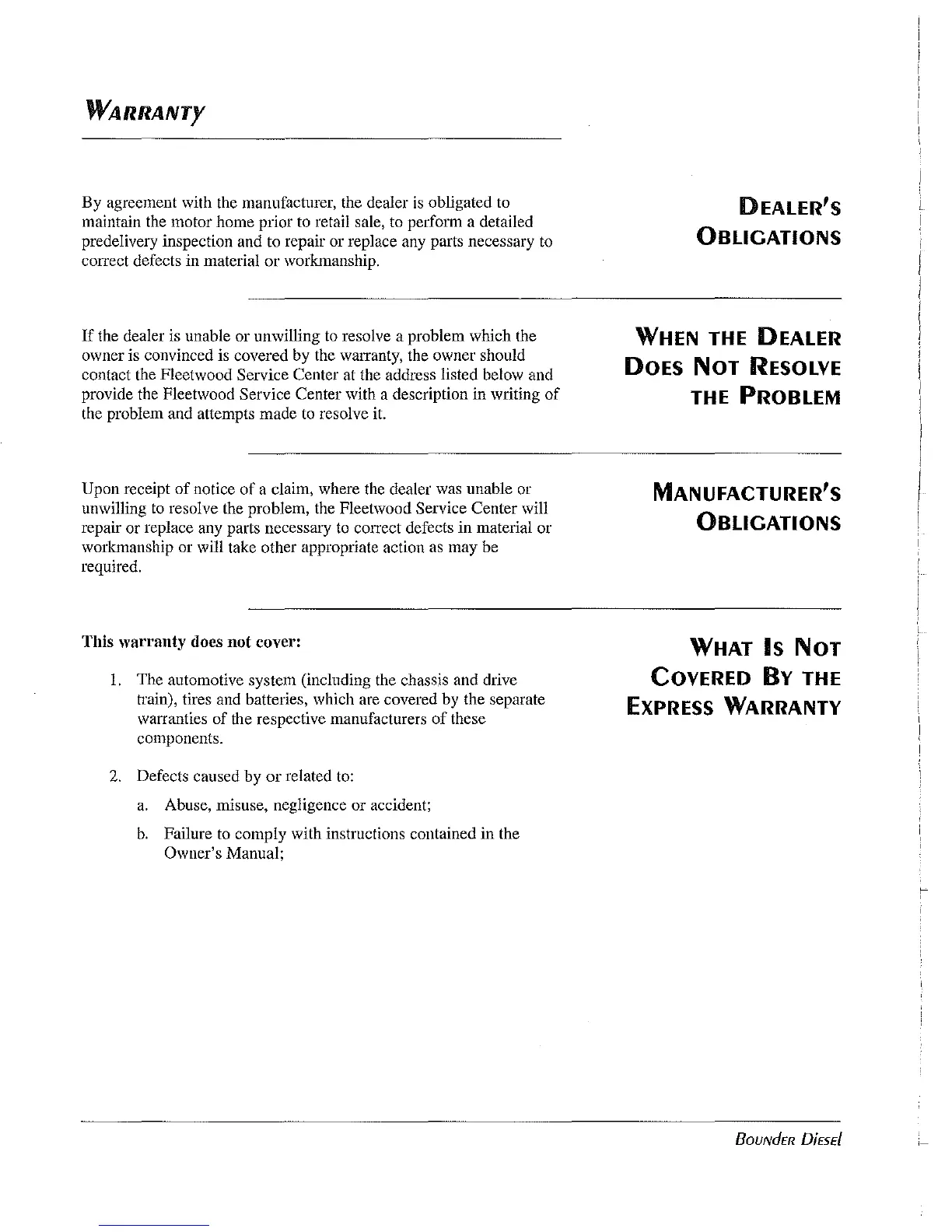 resolve the problem, the Fleetwood Service Center will