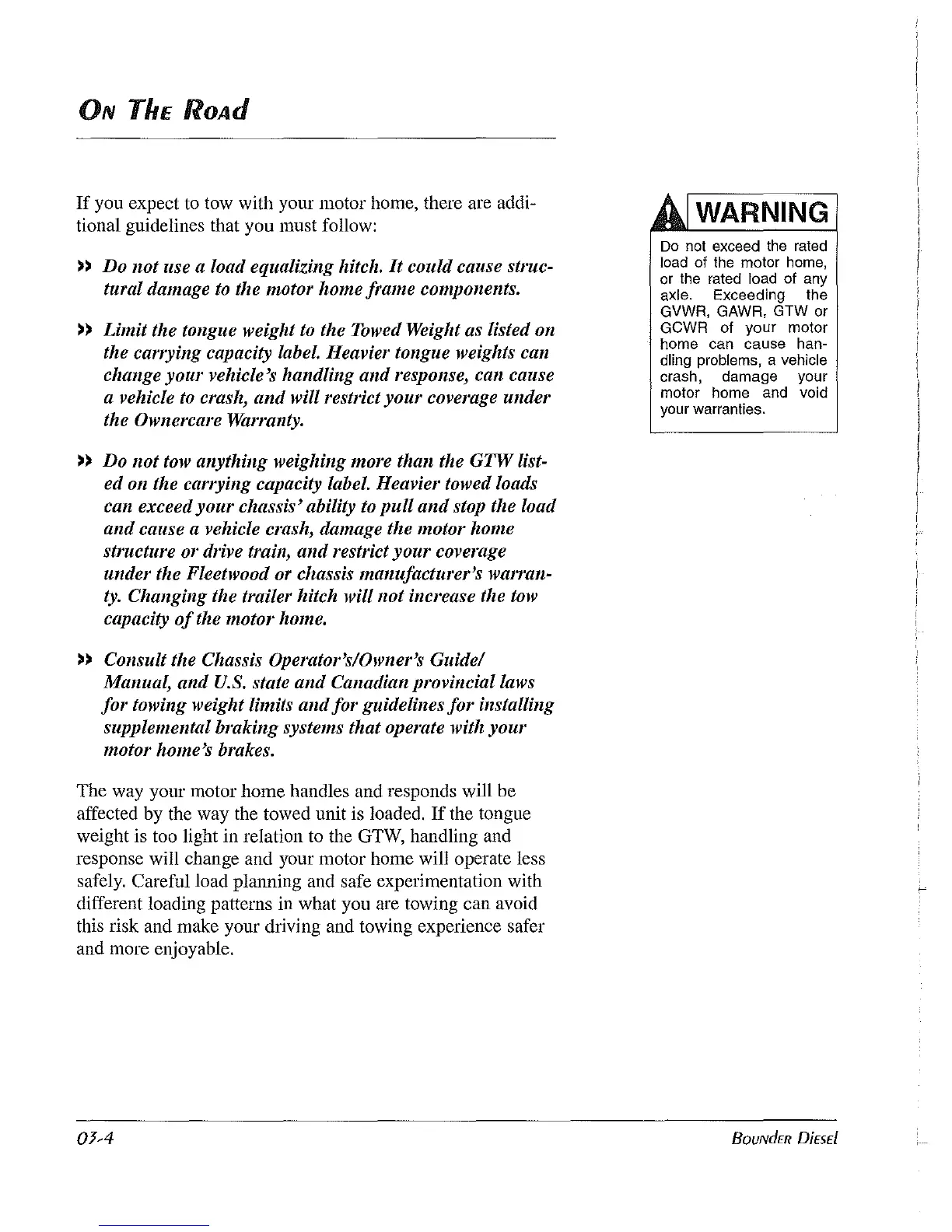 you expect to tow with your motor home, there are addi-