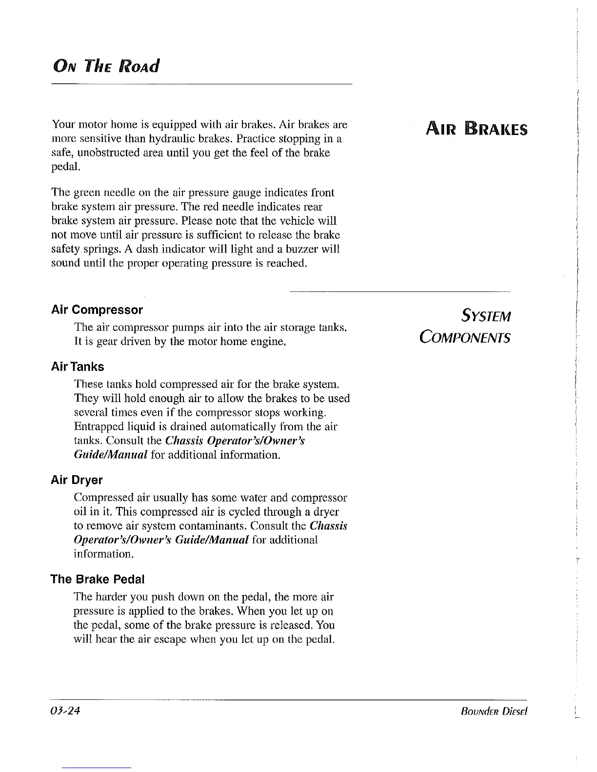 Your motor home is equipped with air brakes. Air brakes are