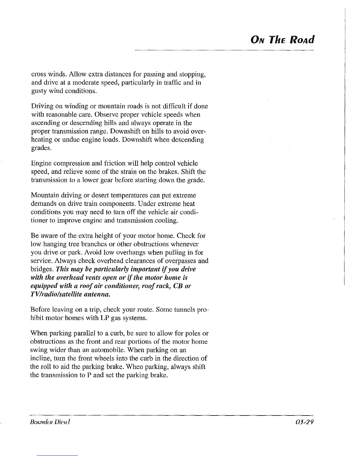 heating or undue engine loads. Downshift when descending