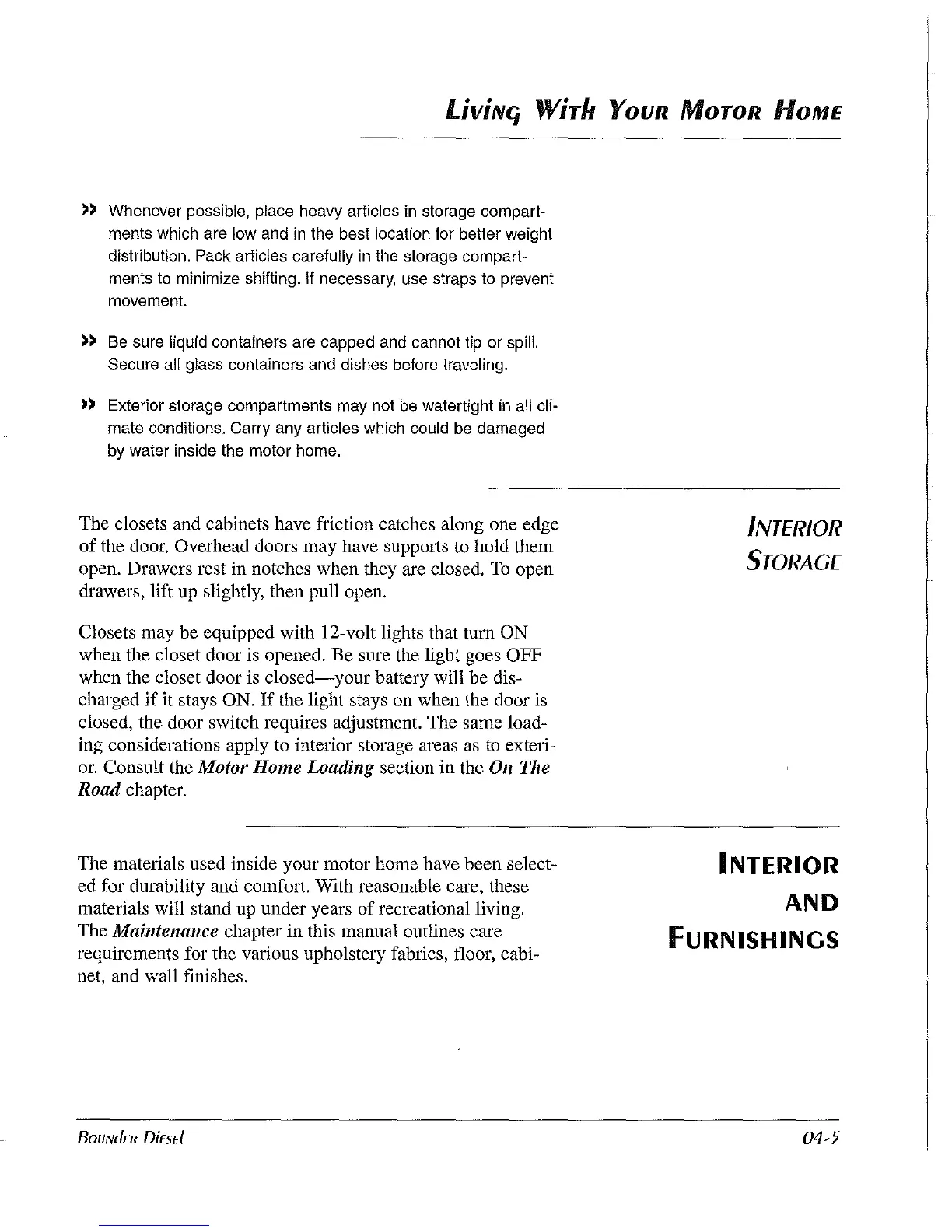 materials used inside your motor home have been select-