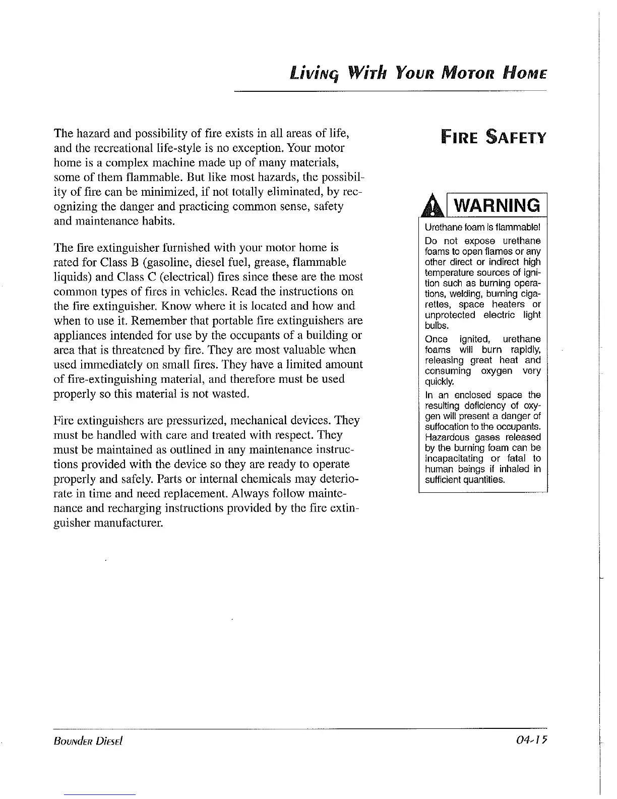The fire extinguisher furnished with your motor home is