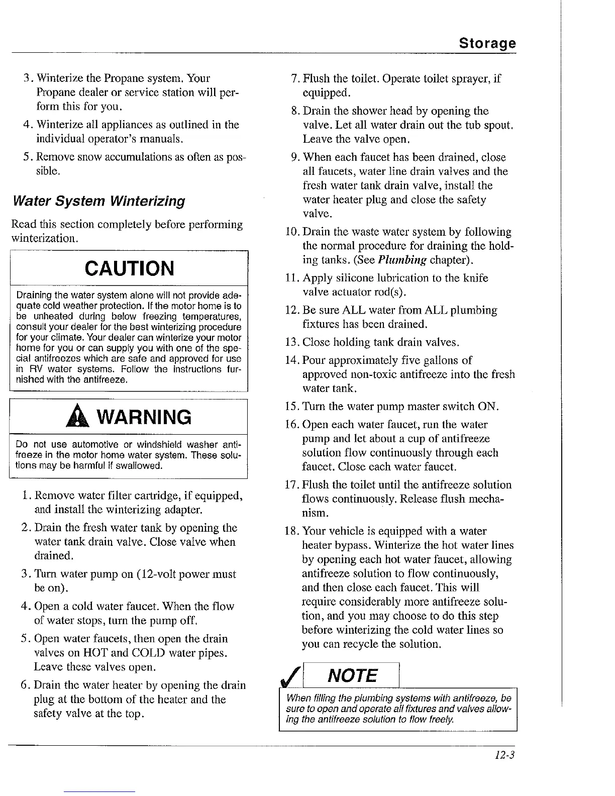 Winterize all appliances as outlined in the