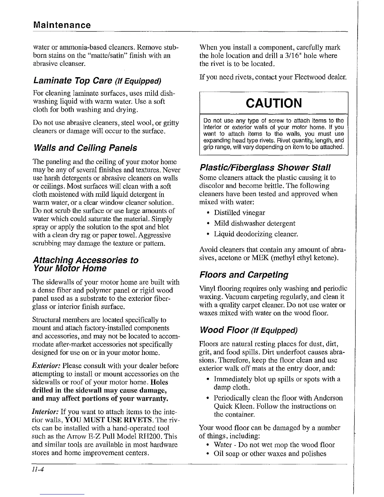 you need tivets, contact your Fleetwood dealer.