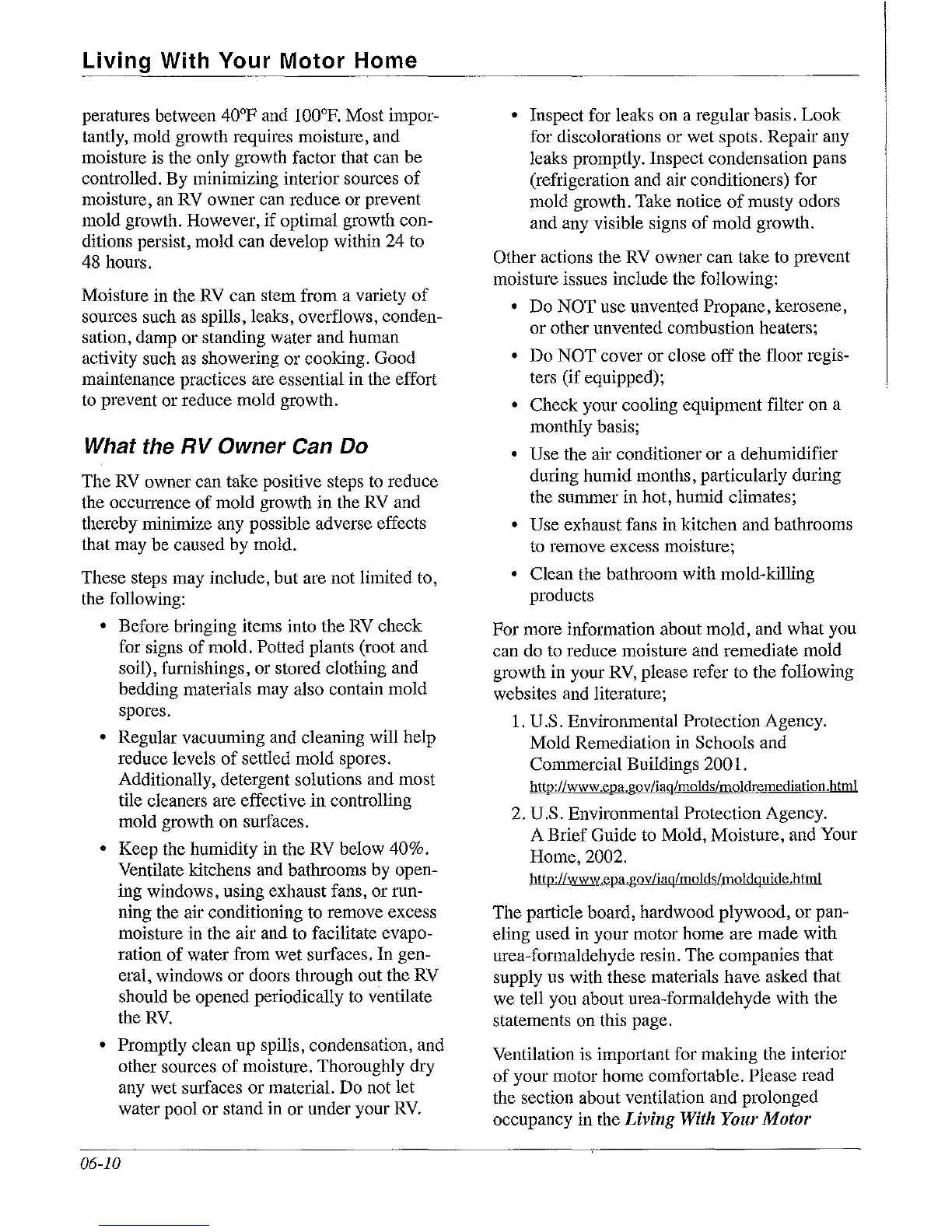 • Keep the humidity in the RV below 40%.