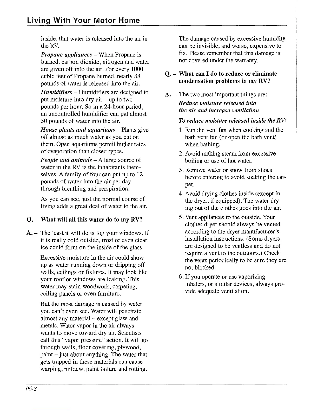 reduce moisture released inside the RV: