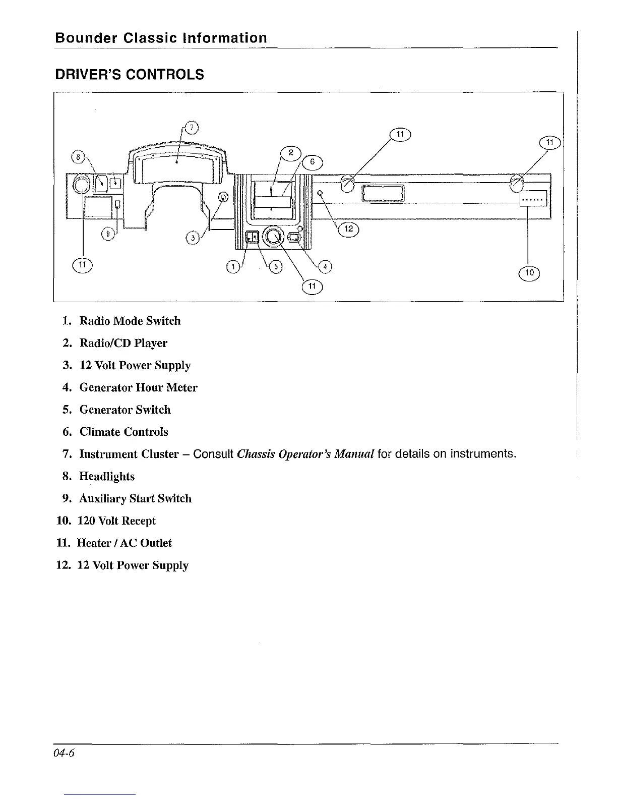 Fleetwood Bounder 2011 - Drivers Controls Diagram