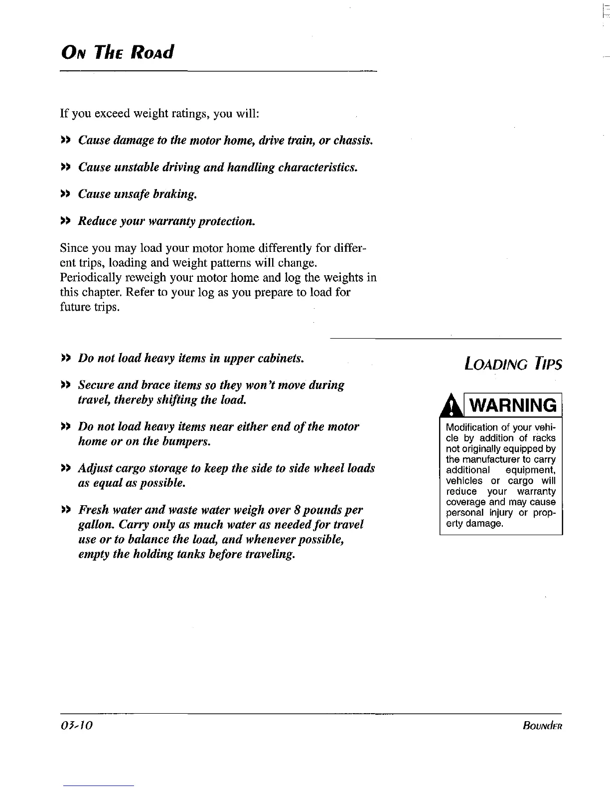 Since you may load your motor home differently for differ-