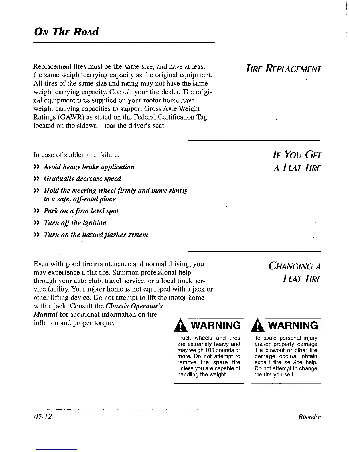 weight carrying capacity. Consult your tire dealer. The origi-