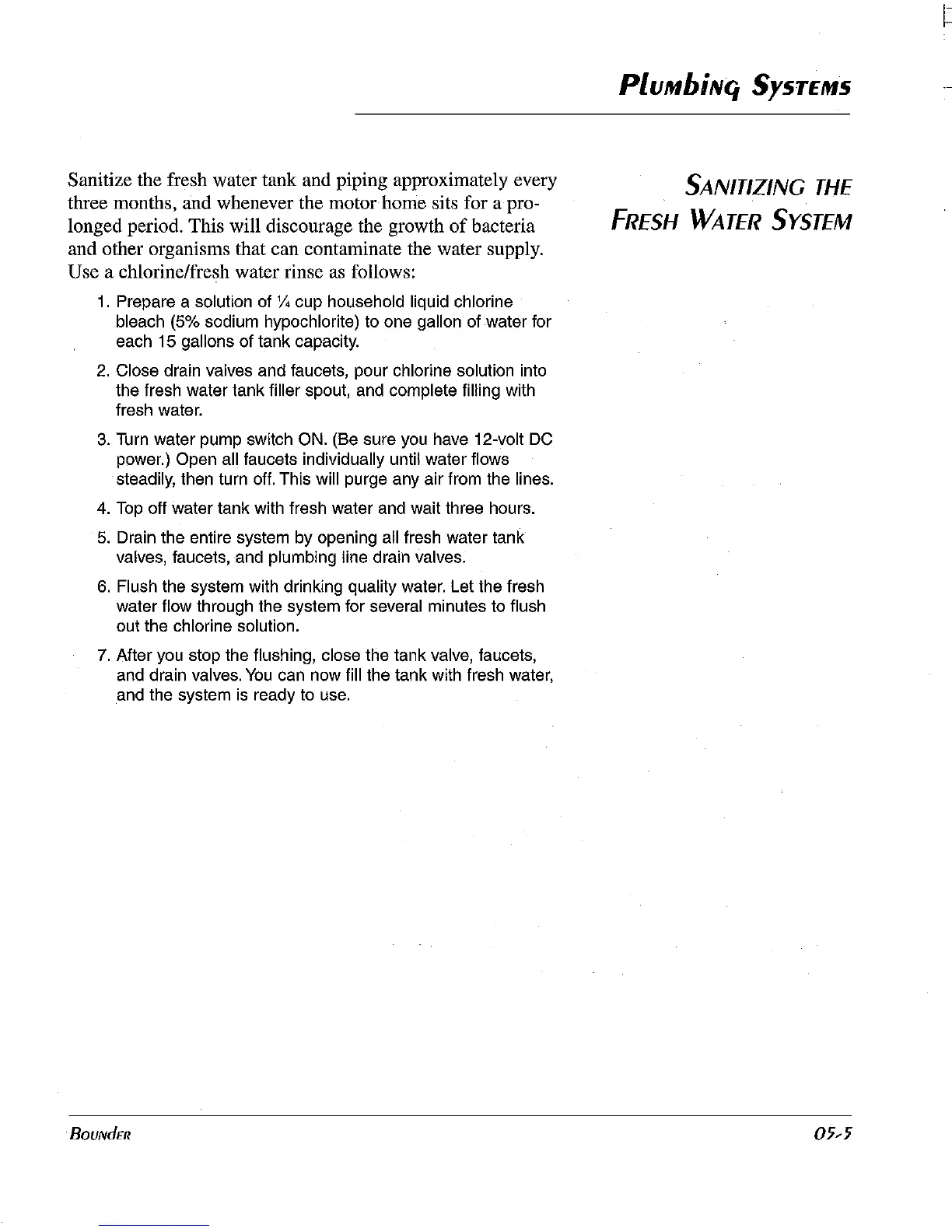 Sanitize the fresh water tank and piping approximately every