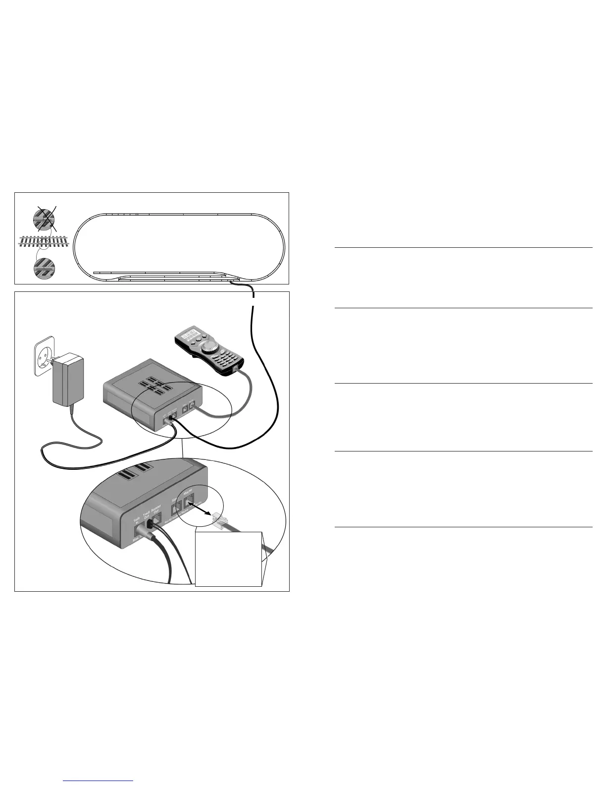 • Die Anschlussdrähte sowohl des Gleises, als auch die des Verstärkers keinesfalls in die Steckdose stecken.