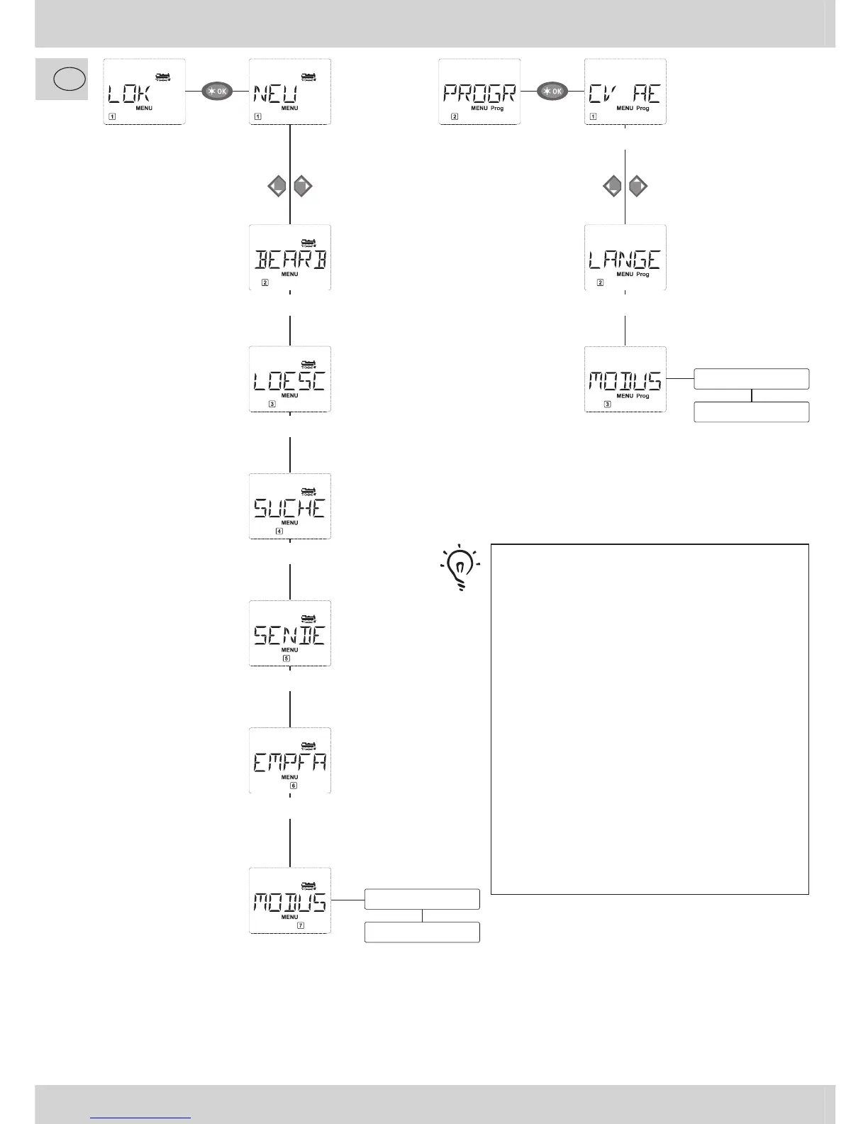 – Durch Drücken der „Licht / OK“-Taste ru-
