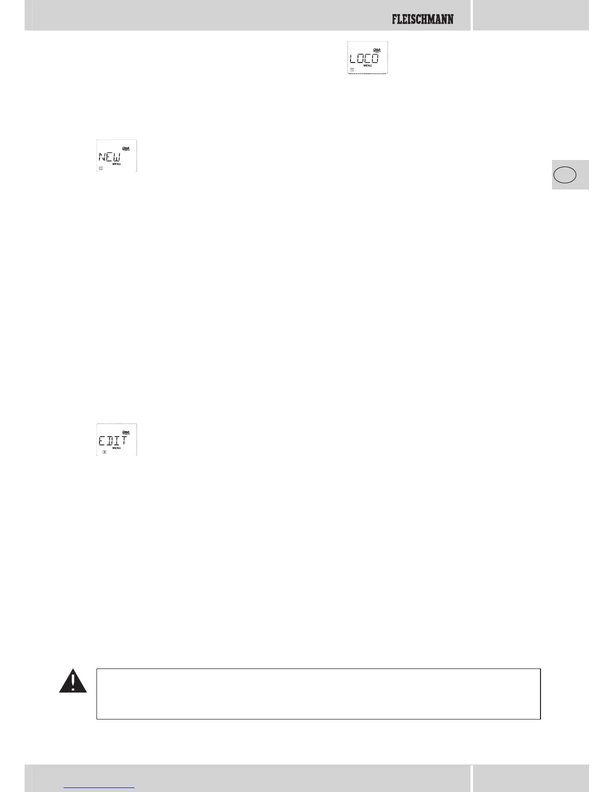 In the fi rst step you enter the locomotive name and have 5 digits available to do so. The fi rst display