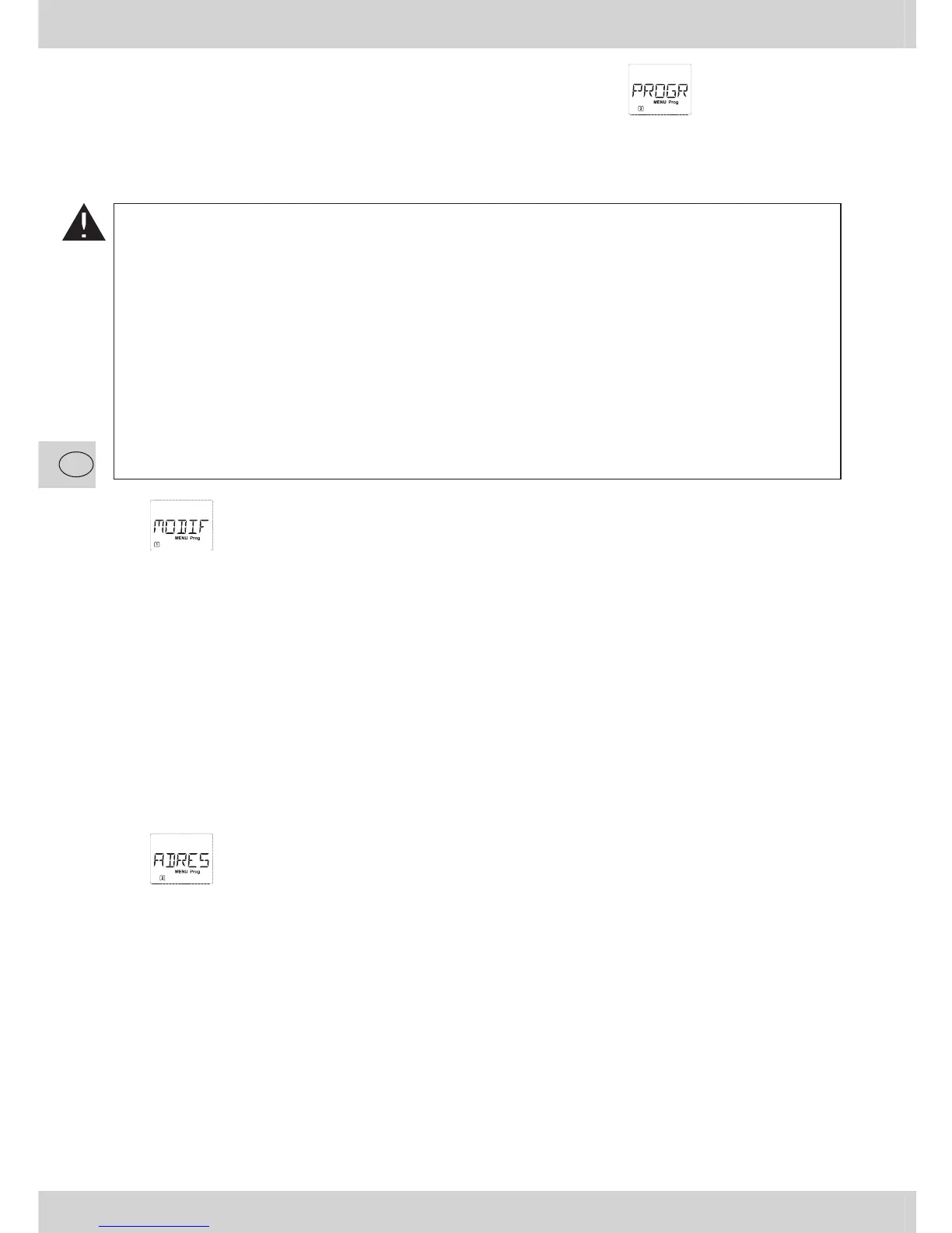 du menu secondaire »ADRESSE LONGUE«, l’écran affi che, pour quelques instants, le menu »PROG«.