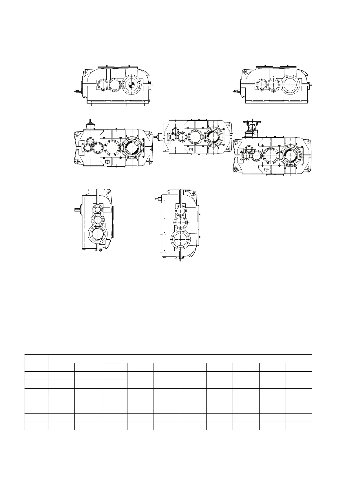 Refer to the following tables for the weights (approximate values, in kg) of the gear units:
