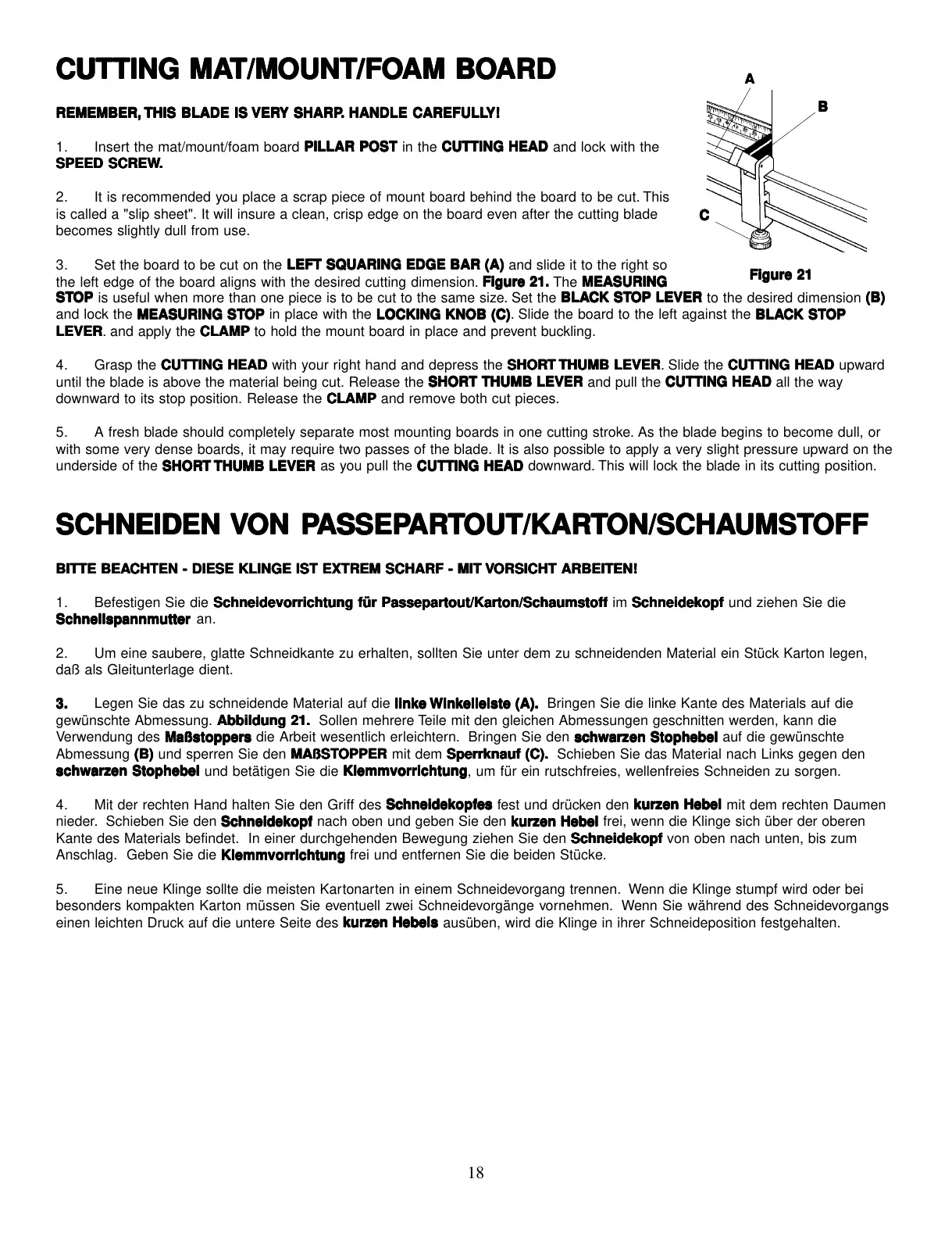 kurzen Hebels ausüben, wird die Klinge in ihrer Schneideposition festgehalten.