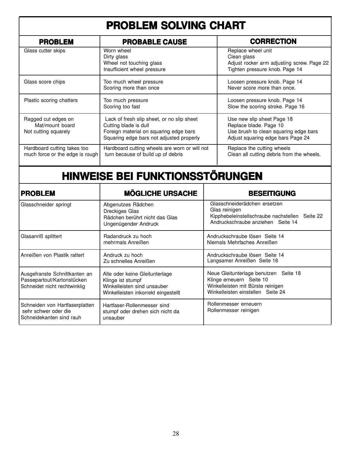 Glass score chips Too much wheel pressure Loosen pressure knob. Page 14