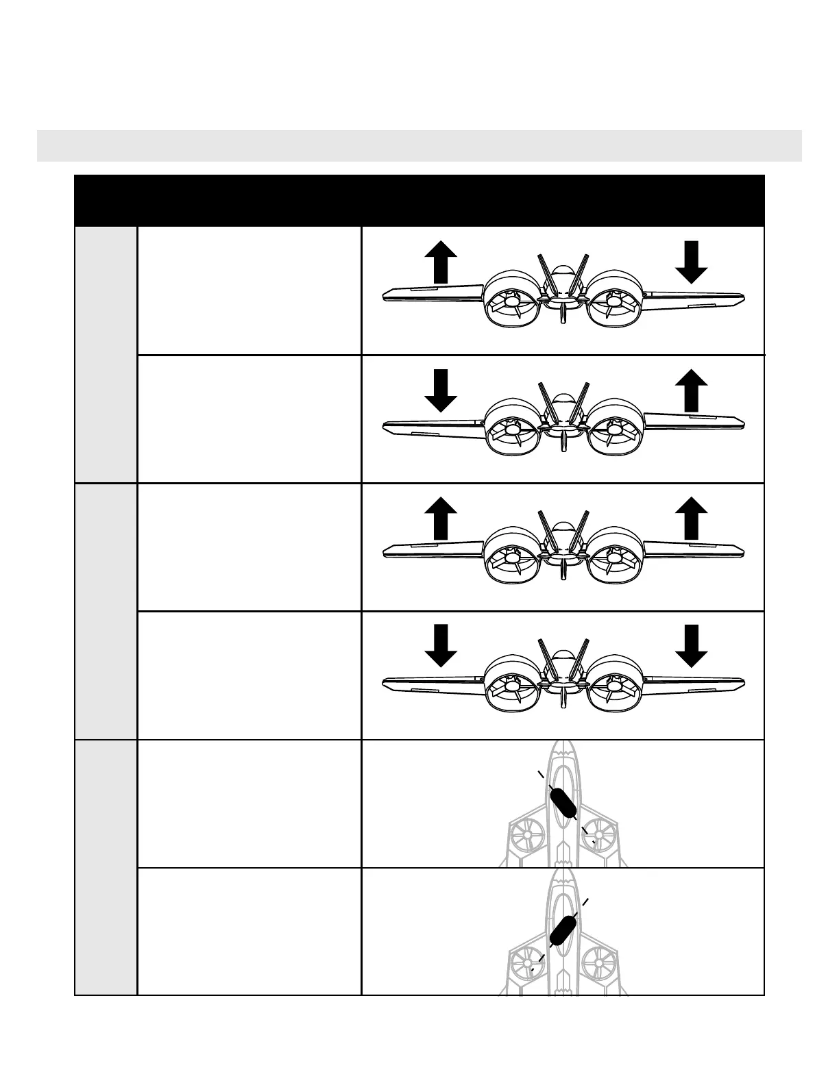 Refer to the chart below to determine the proper control surface directions.
