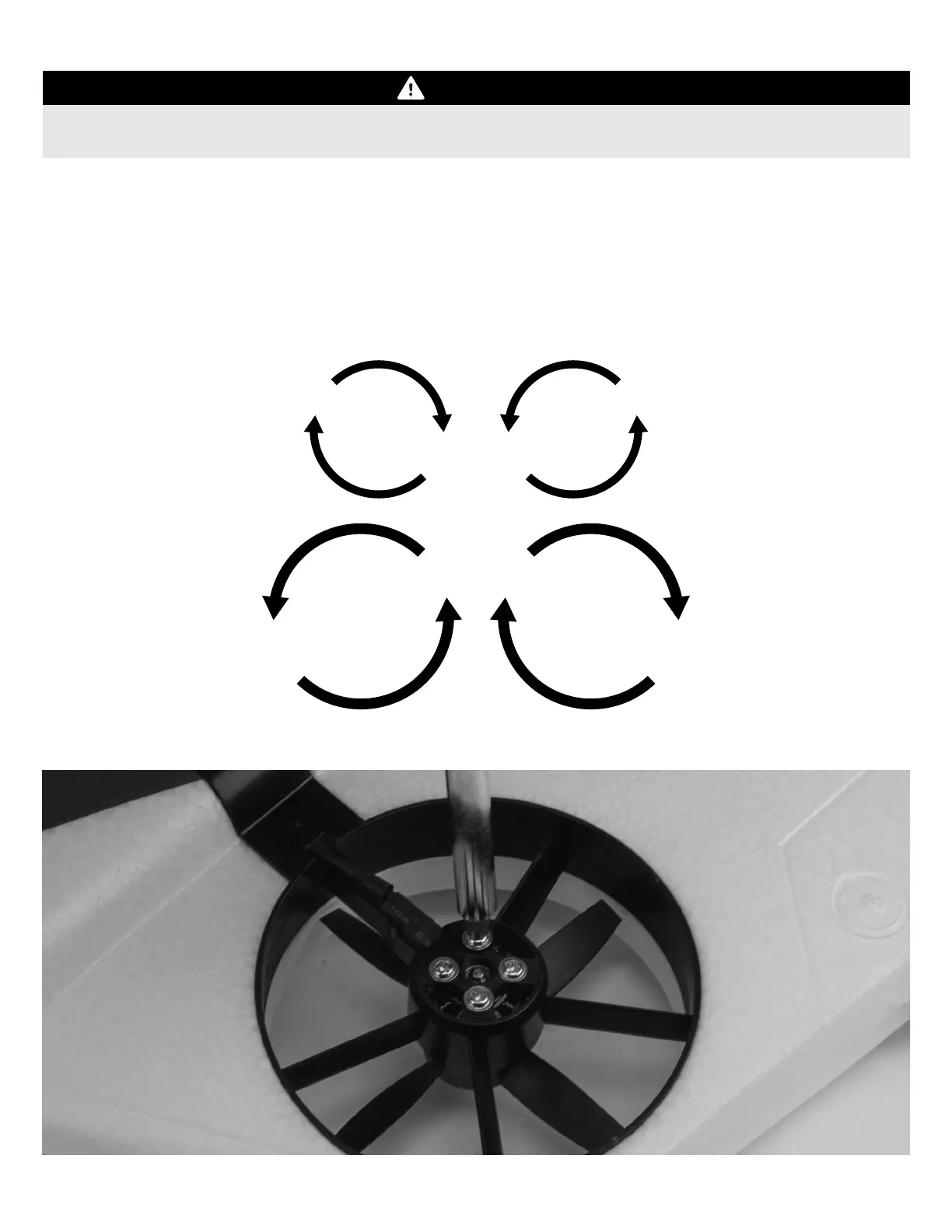 The fans on the FV-31 Cypher spin in different directions for stability and performance. Power the model and verify the motors spin in
